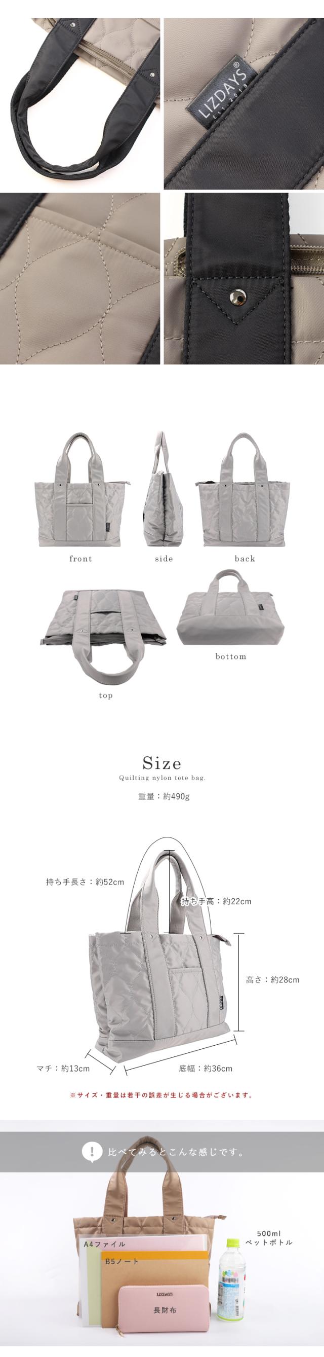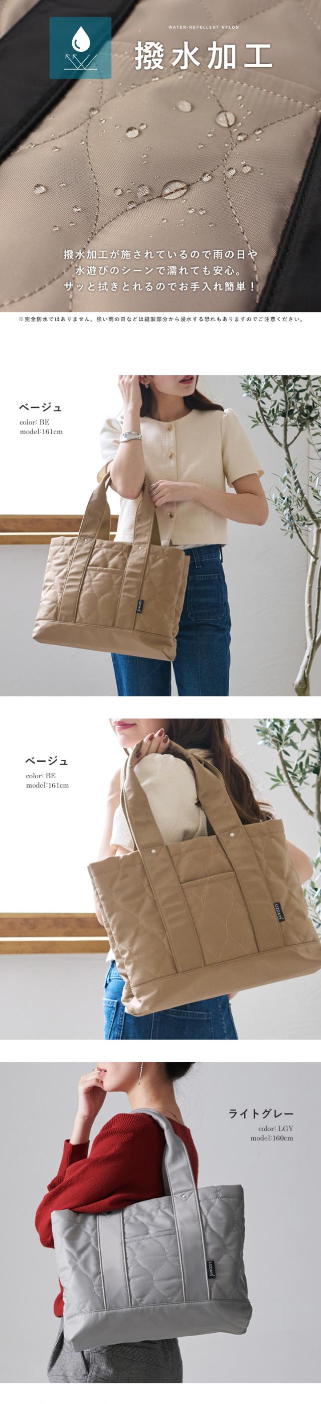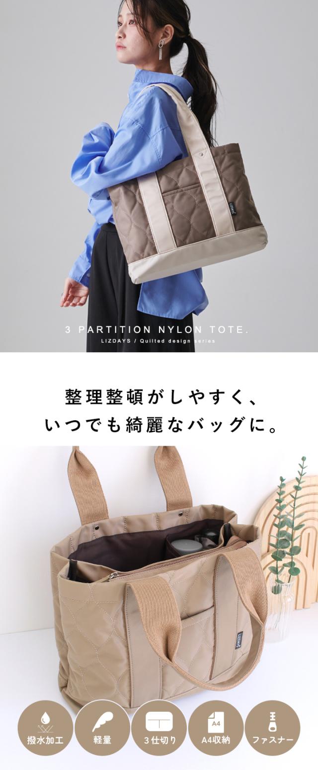 キルティング トートバッグ レディース 仕切り トート 撥水 ナイロン 大容量 A4 マザーズバッグ 軽量 ポケット 底板付き ICカード入れ 多収納 おしゃれ LIZDAYS リズデイズ 大人 ナイロントート 肩掛け 通勤 通学 お出かけ【lz-51501r】