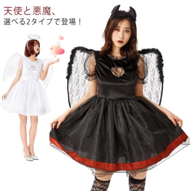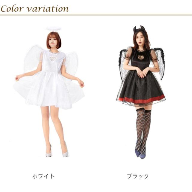 ハロウィン コスプレ 天使 悪魔 仮装 衣装 コスチューム 3点セット 魔女 エンジェル カチューシャ+ワンピース+翼 大人 女性 可愛い 大きいサイズ セクシー レディース 魔法使い 衣装 ハロウィン仮装 イベント 学園祭 文化祭