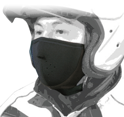暖かく肌触りのよいフリースを襟周りに採用し保温、風の当たる鼻口部分は立体裁断クロロプレンを使用することで防風する、防風・保温フェイスマスクです。クロロプレンン部にはシールドやメガネが曇りにくいようにエアベンチレーションホールを設け、呼気が上に行きにくい構造。同時にマスク内側の結露を軽減し、冬の快適なライディングをサポートします。耳掛け付でヘルメット脱着時のずり落ちを軽減し、普段使いもしやすくなっています。