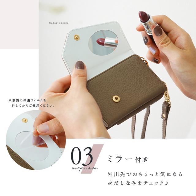 スマホショルダー スマホケース スマホポーチ ミラー付き ストラップホルダー ストラップ カードケース 斜め掛け 紐 ショルダーベルト おしゃれ スマホストラップ