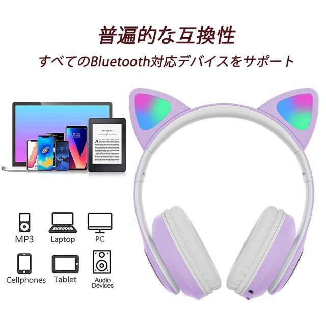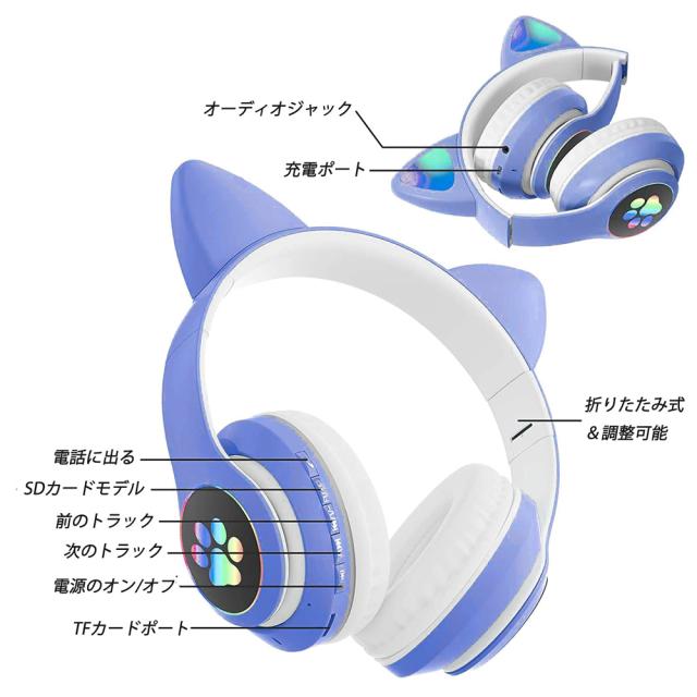 キッズヘッドホン 猫耳デザイン 密閉型 Bluetooth 5.0 聴力保護 LED グラデーション 子供用イヤホン 高音質 折り畳み式 コンパクト 軽量 旅行 電車 飛行機 バス 移動時間 知育学習 音楽 映画 語学勉強