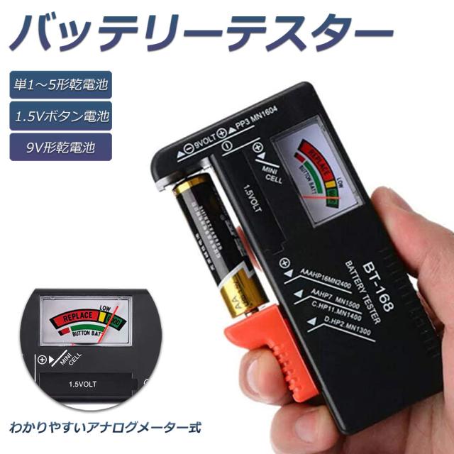 電池チェッカー バッテリーテスター 電池残量測定器 電池 チェッカー 乾電池やボタン電池の残量チェック 残量 乾電池 単1 単2 単3 単4 単5 9V 角型 ボタン 測定 計測 アナログ 小型