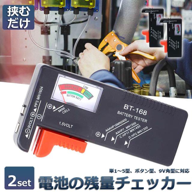 電池チェッカー バッテリーテスター 2個セット 電池残量測定器 電池 チェッカー 乾電池やボタン電池の残量チェック 残量 乾電池 単1 単2 単3 単4 単5 9V 角型 ボタン 測定 計測 アナログ 小型