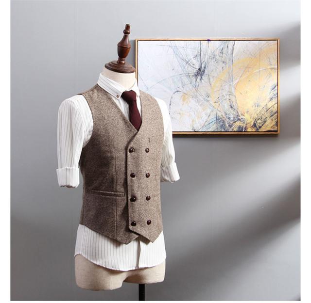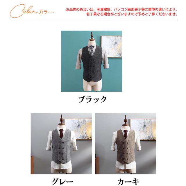 ジレーベスト フォーマルベスト メンズ スーツベスト ヴィンテージ Vネック トップス ビジネス ダブルボタン 紳士服 春秋 西洋