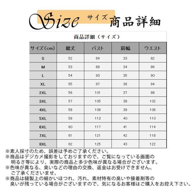 サイズ:/S/M/L/XL/2XL/3XL/4XL/5XL/6XL/7XL/8XL