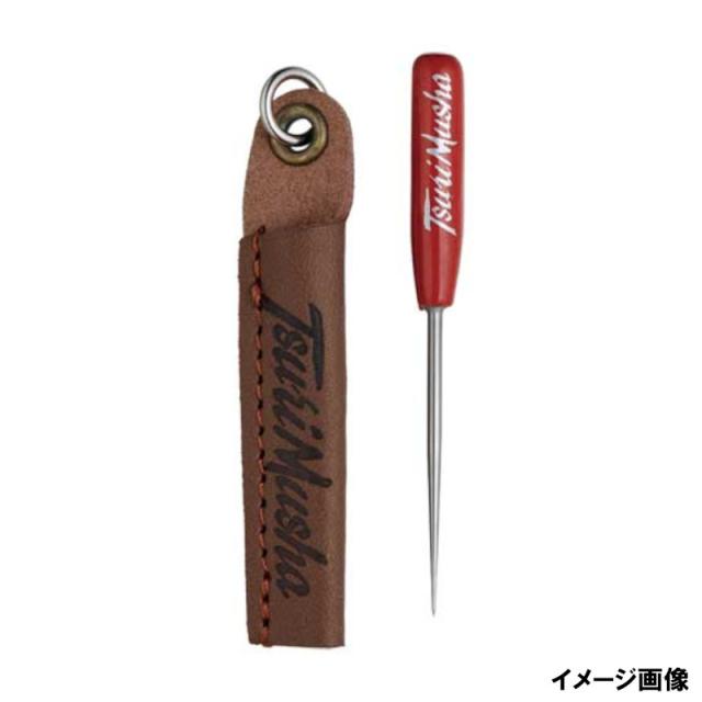 【釣武者/Tsuri Musha】ぶら下げリング付き TsuriMushaロゴ刻印レザーシース。鋭い絶妙テーパーで、ラインに入り込み絡んだラインの輪を広げてほつれを解きます。