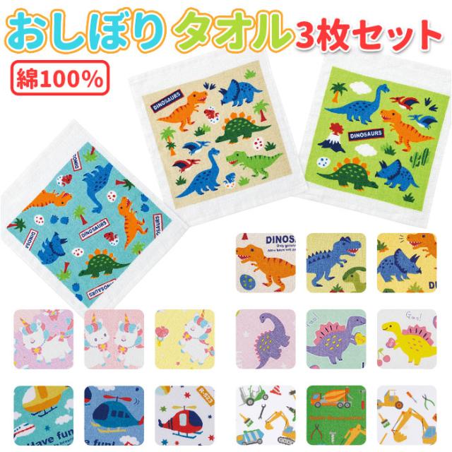 SKATER スケーター おしぼり 通販 3枚セット 3枚 セット タオル お手ふき キャラクター 衛生 お出かけ 運動会 遠足 行楽 ランチグッズ ディノサウルス ハッピー&スマイル ヘリコプター ユニコーン かわいい