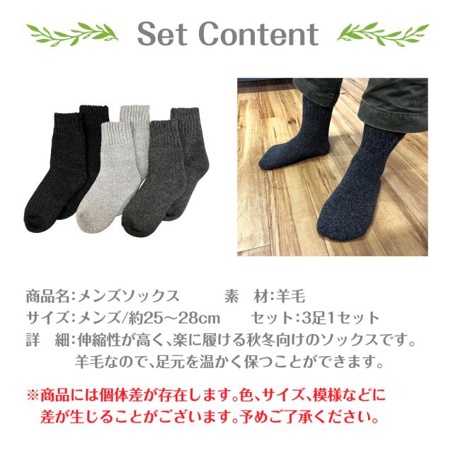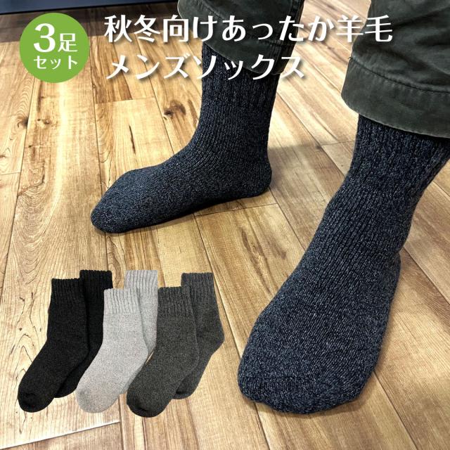 メンズ 靴下 あったか羊毛 3足セット ソックス 暖かい 男性 フリーサイズ 冷房対策 保温 厚手 防寒対策 冷え 冷え性対策 socks18
