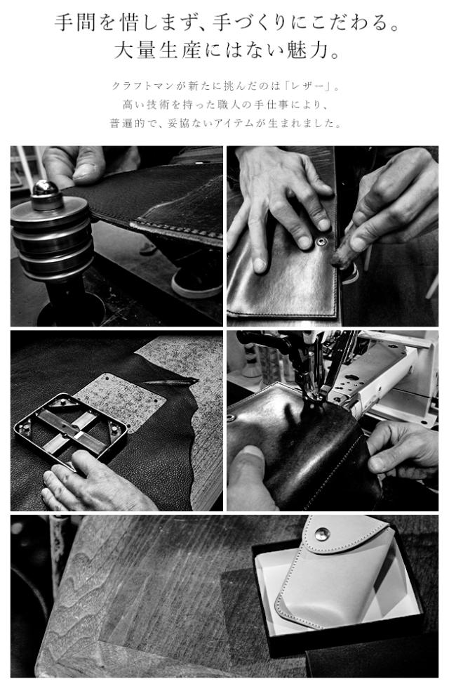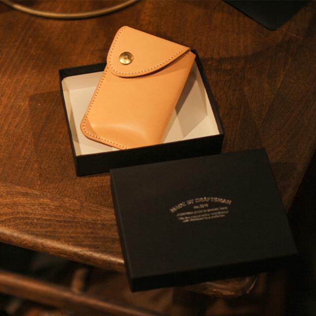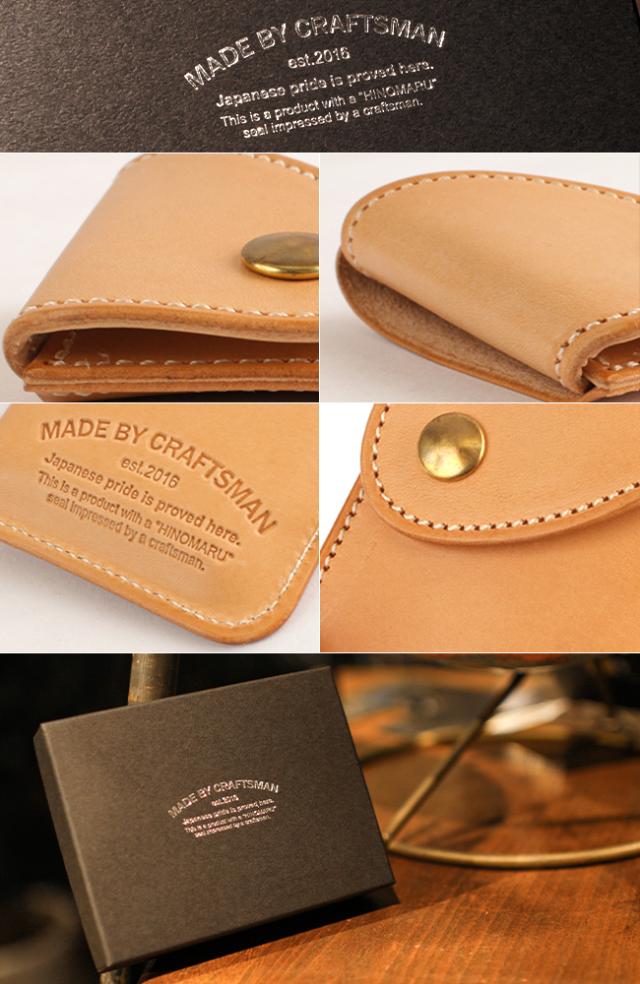 使ううちにヴィンテージのように味が出てくる真鍮パーツや、革職人の技が光る縫製の精度・美しさなど、細部にも妥協を許さないディテールです。背面にMADE BY CRAFTSMANのブランドロゴが刻印されています。化粧箱が付きますので、ギフトにもおすすめです。