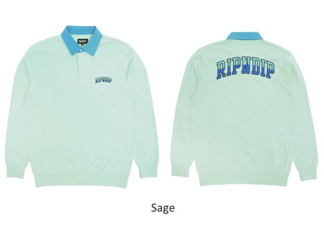 リップンディップ RIPNDIP Team Spirit Long Sleeve Rugby Sage ラグビーシャツ ラガーシャツ カットソー 長袖 男性 メンズ rnd9510