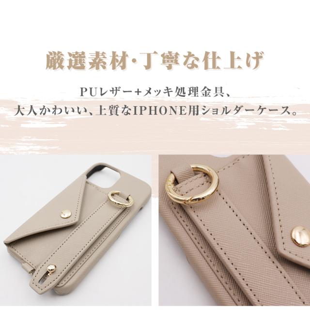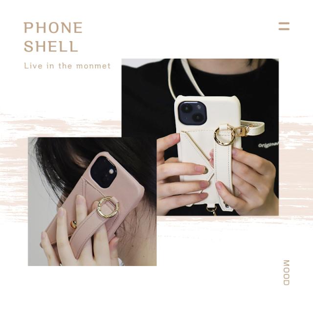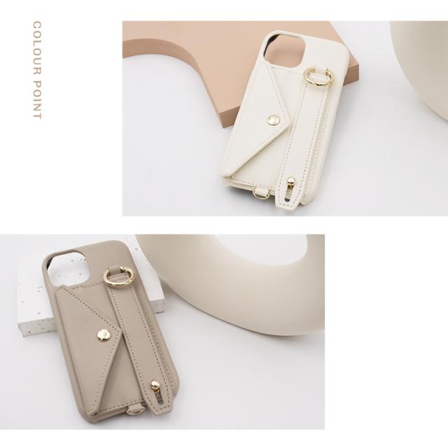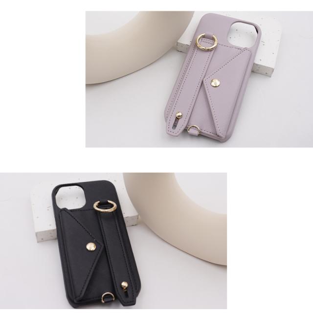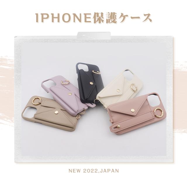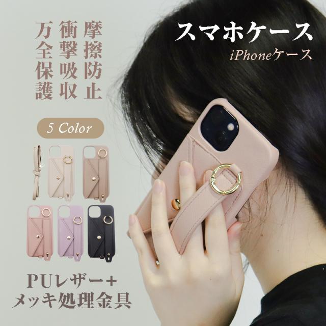 iPhone ケース 保護ケース PUレザー ハイブリッドケース ショルダーストラップ付き 長さ調節可能カードポケット カード収納可能