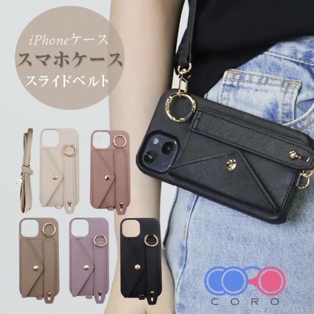 iPhone ケース 保護ケース PUレザー ハイブリッドケース ショルダーストラップ付 スマホバンド 落下防止スライドベルト カラビナリング付