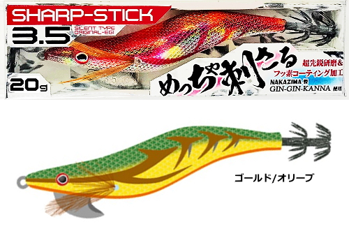 (セール) ナカジマ シャープスティック 3.5号 #G-OL ゴールド×オリーブ / エギング 餌木 / メール便可