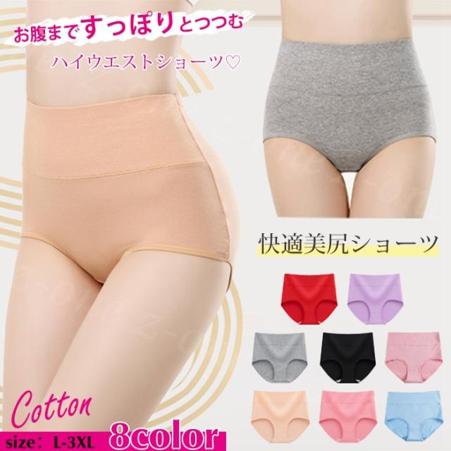 【3枚まとめ買いで送料無料】ハイウエスト ショーツ コットン 綿素材 送料無料 レディース 下着 送料無料 レディース 下着 パンツ スタンダード 深め 深履き 無地 保温 効果 子宮温活 まとめ買い 入学式 入園式