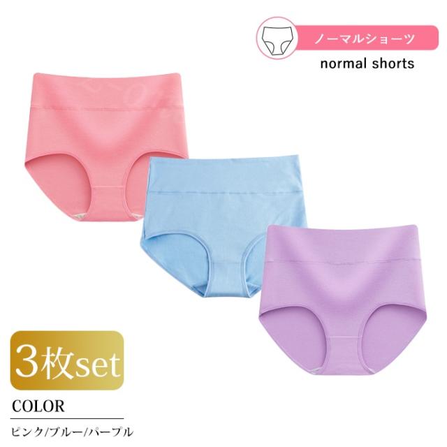 【1枚310円!2set購入&クーポン利用で】【3枚セット】ハイウエスト ショーツ 送料無料 レディース 下着 パンツ スタンダード 深め 深履き 無地 保温 効果 子宮温活 まとめ買い 福袋 バレンタインデー