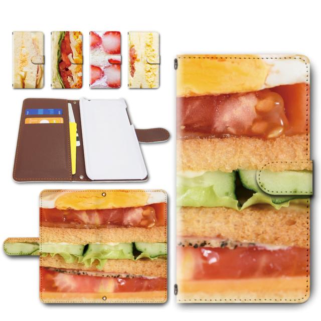 らくらくスマートフォン F-52B ケース 手帳型 カメラ穴搭載 サンドイッチ 柄 いちご タマゴ トマト ランチ おしゃれ スマホケース らくらくスマートフォンケース f52b ケース 手帳ケース 手帳 カバー