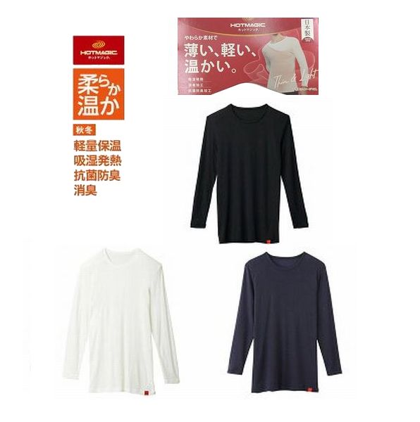 薄手 HOTMAGIC(ホットマジック)の『薄く軽く温かい』シリーズの丸首9分袖シャツです。