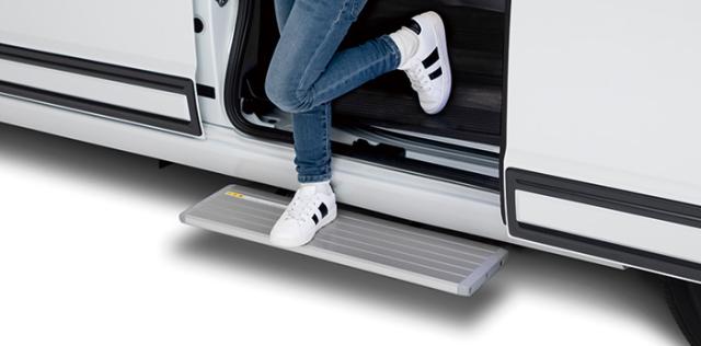 左側スライドドアの開閉に連動して作動する、電動ステップ。