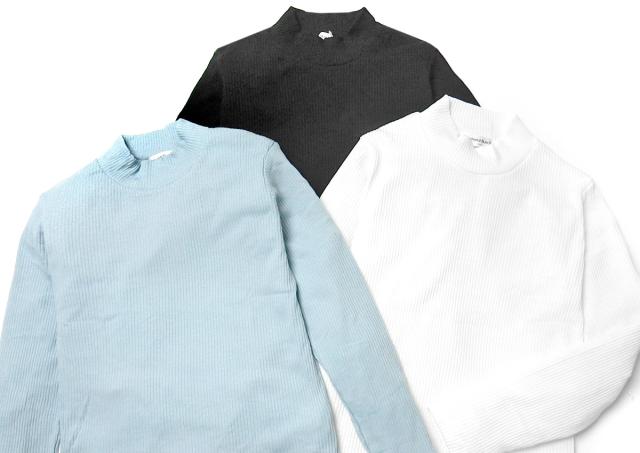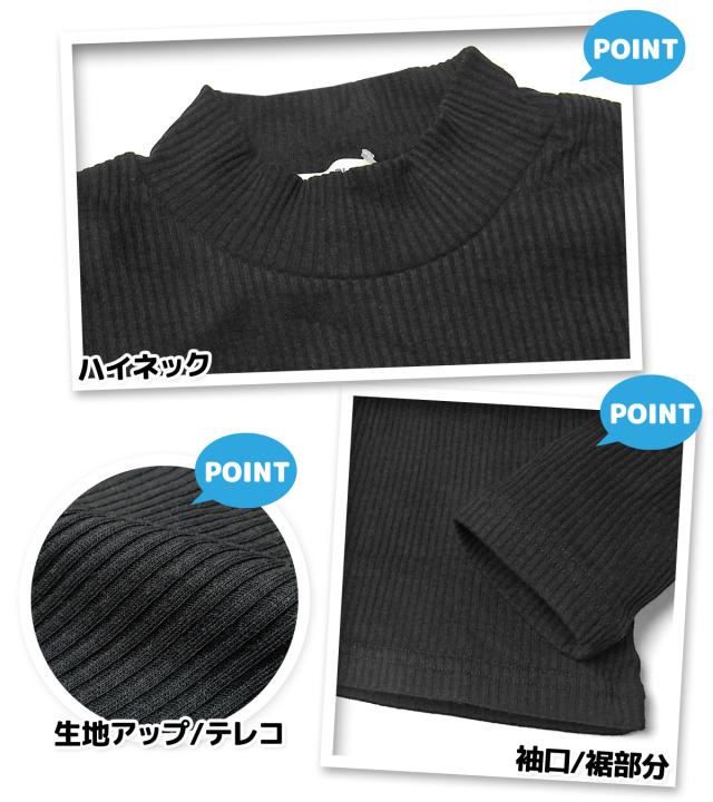 【送料無料】女児 ジュニア テレコ 長袖 Tシャツ ハイネック 伸縮性 無地 子供服 女の子 140cm 150cm 160cm nw-0746【メール便対応】