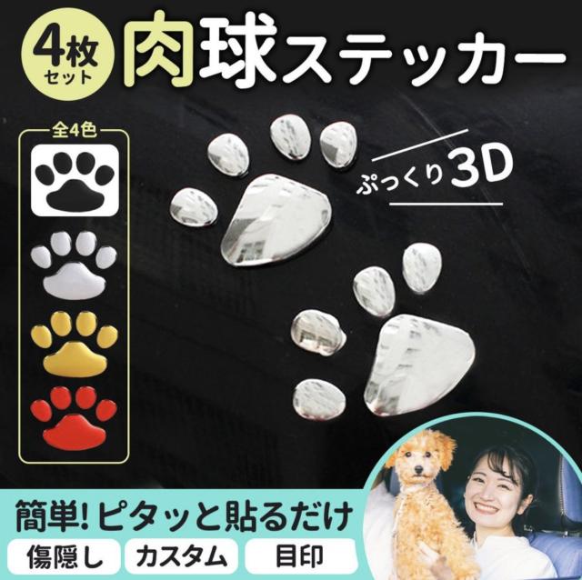 肉球 ステッカー 3D 足跡 犬 猫 わんちゃん ねこちゃん カー用品 車 バイク ヘルメット デコレーション 装飾 傷隠し 凹み隠し立体