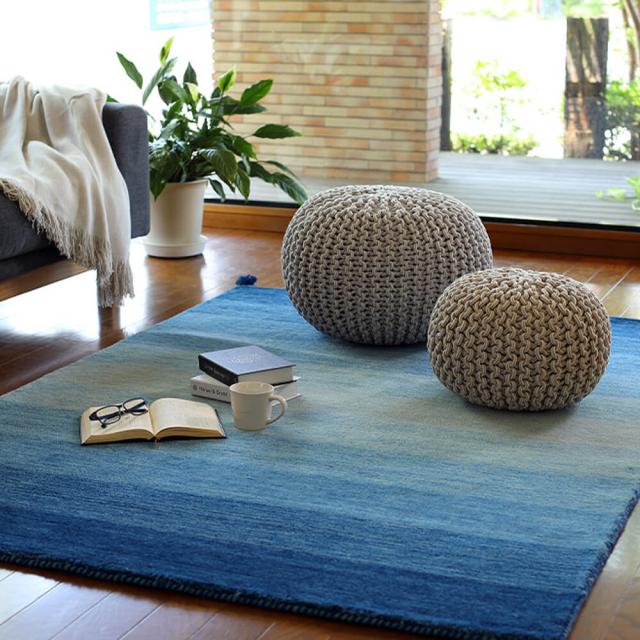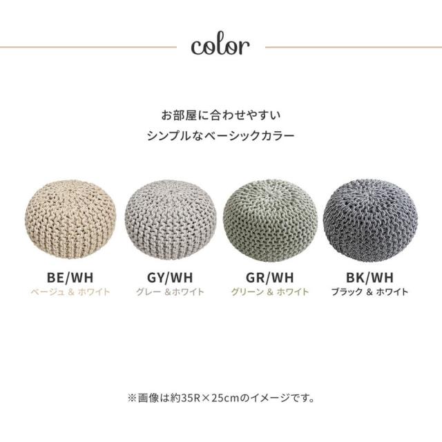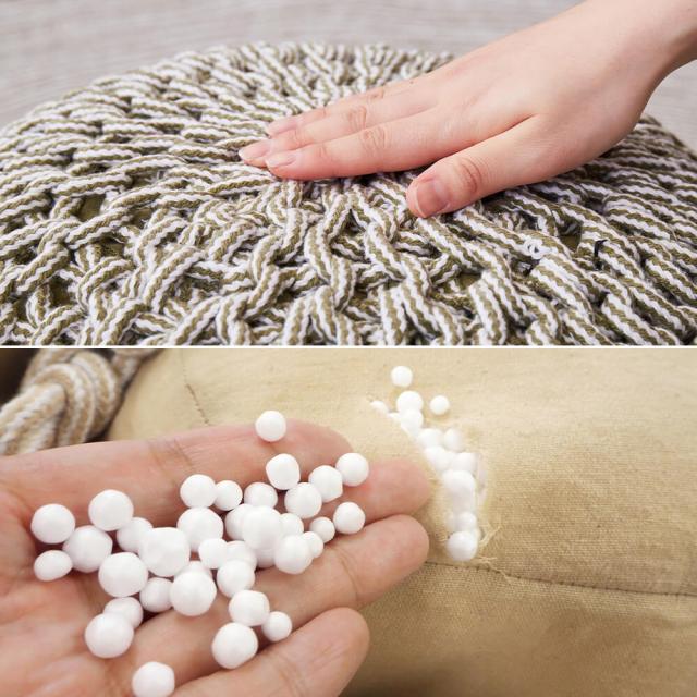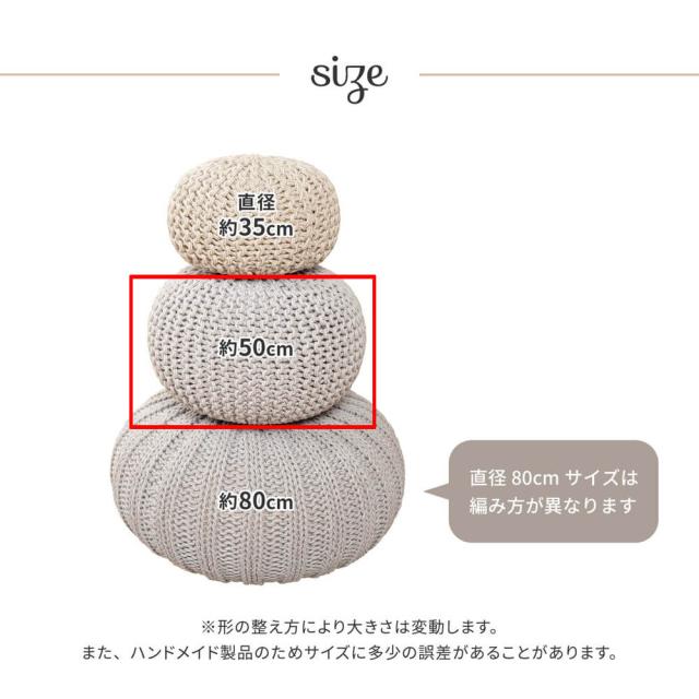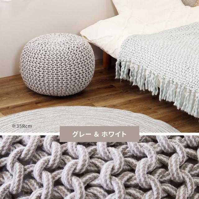 インドの職人によって編み込んで作られたニット風のプフ。