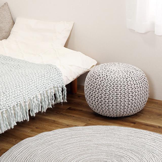 ざっくりとした編み目と、ころんと丸いフォルムで置くだけでかわいい、インテリアアイテム。