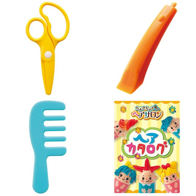 | 材質 | 米粘土:米粉、水、塩分、食用顔料、保存料 粘土容器・フタ:PP 人形・はさみ・バリカン・くし:ABS お店・ヘアカタログ:紙 |