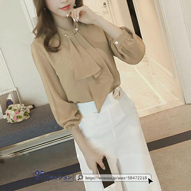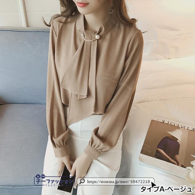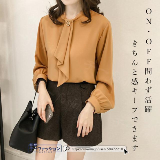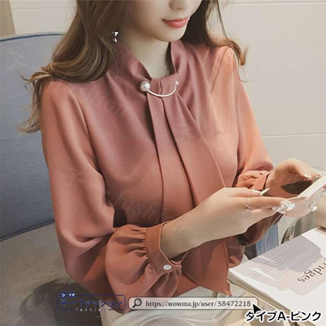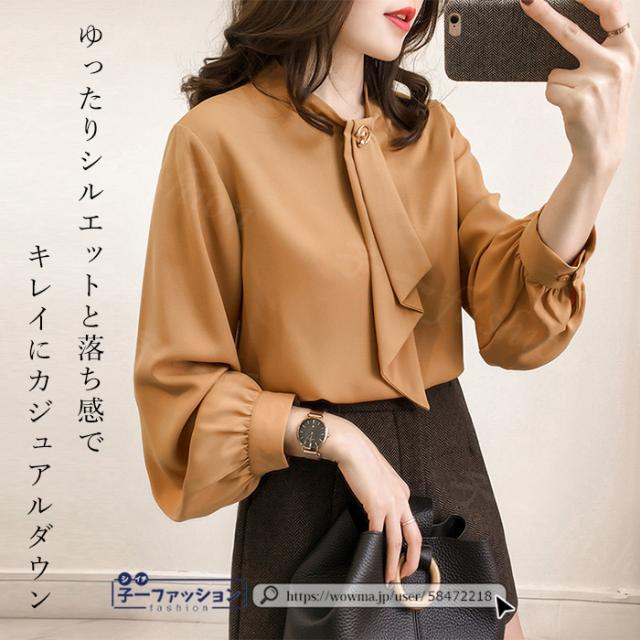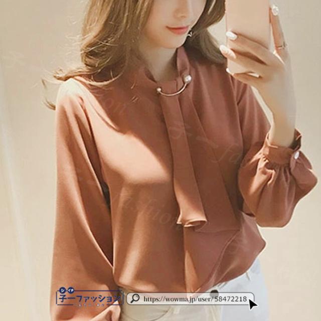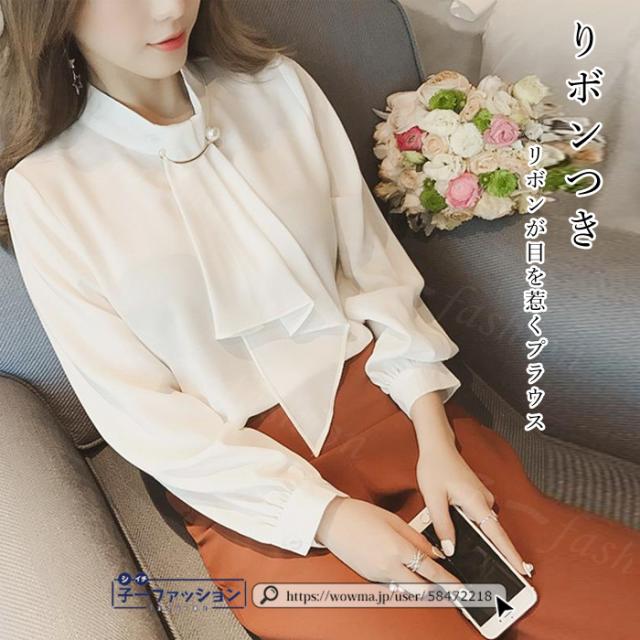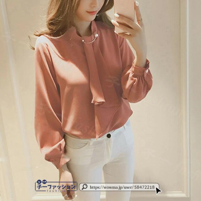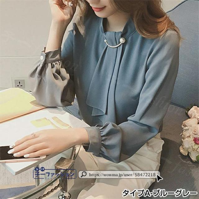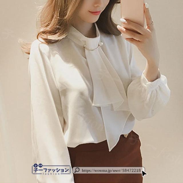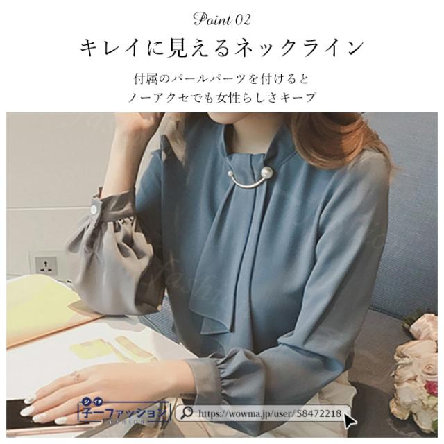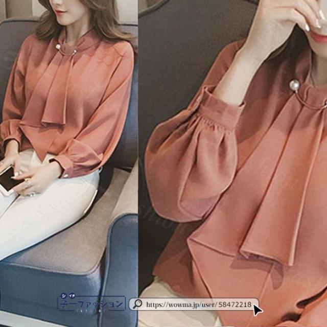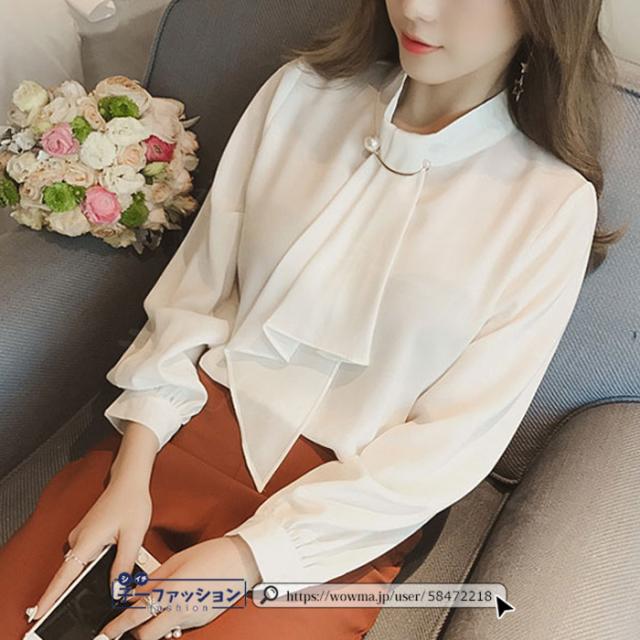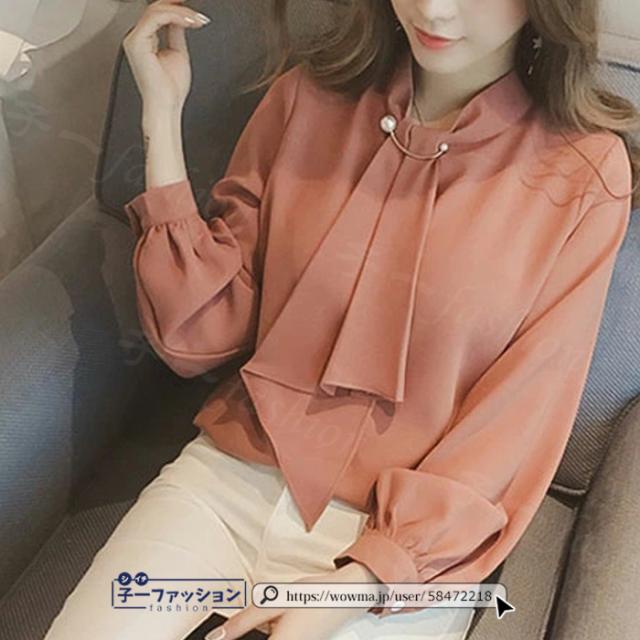 ブラウス シャツ シフォンブラウス 長袖 冬新作 トップス オフィス マッチングしやすい リボン付きブラウス 胸元パールボウタイブラウス 無地 きれいめ カジュアル 女子力 同窓会 女子会 デート 七五三 通勤 OL 春服 秋冬