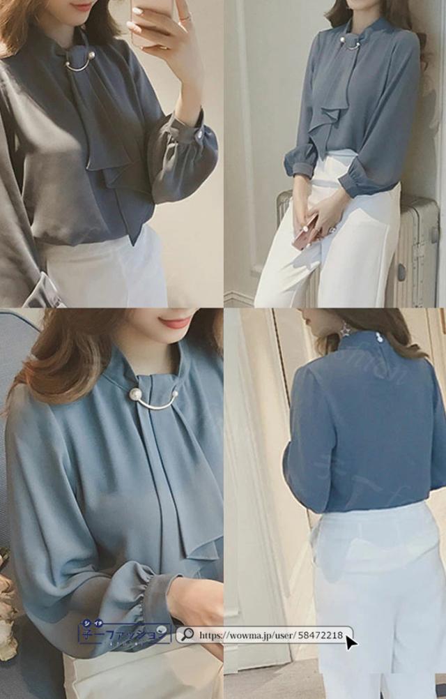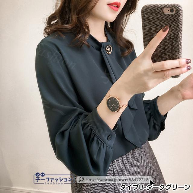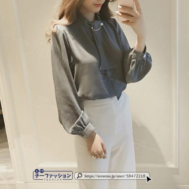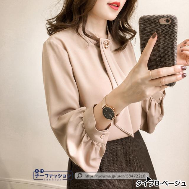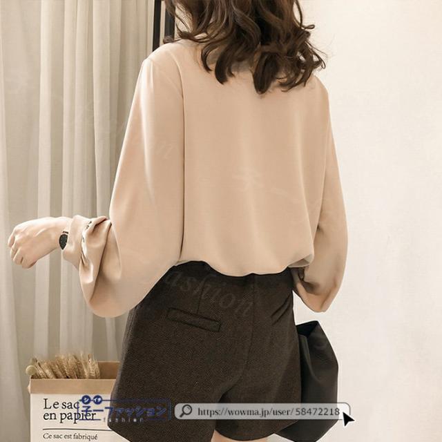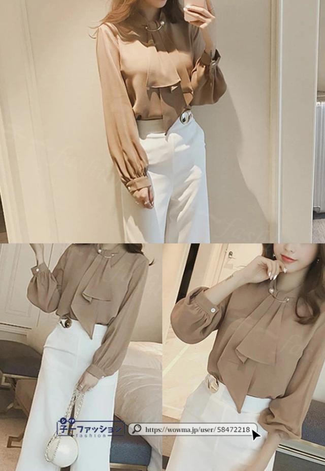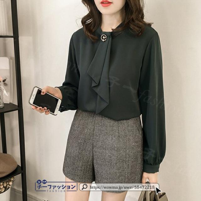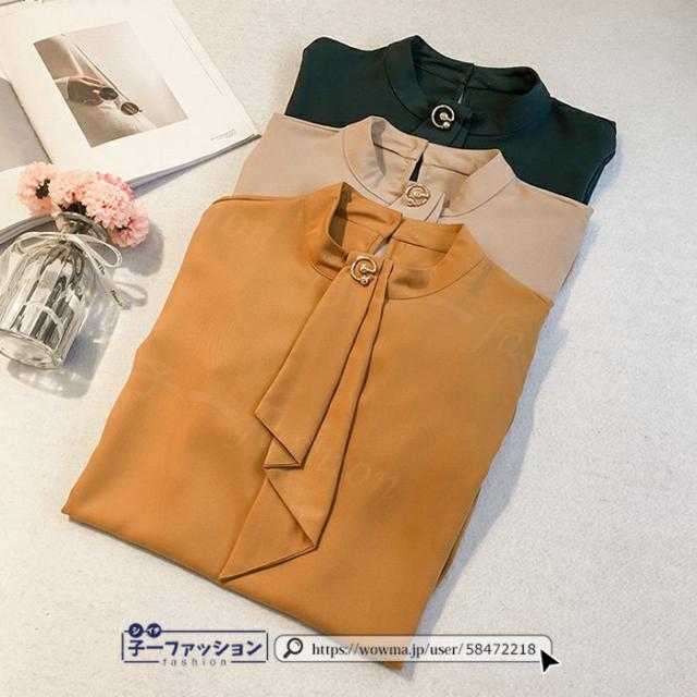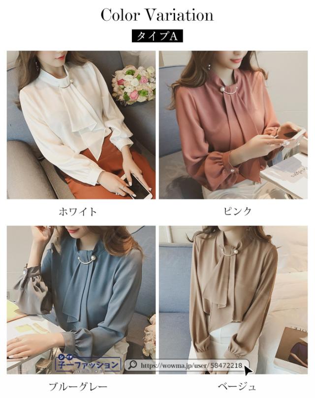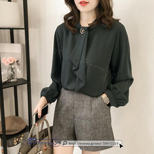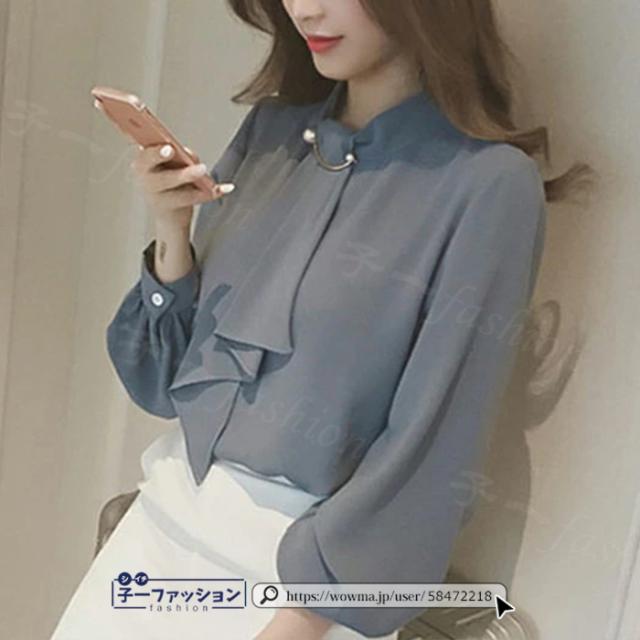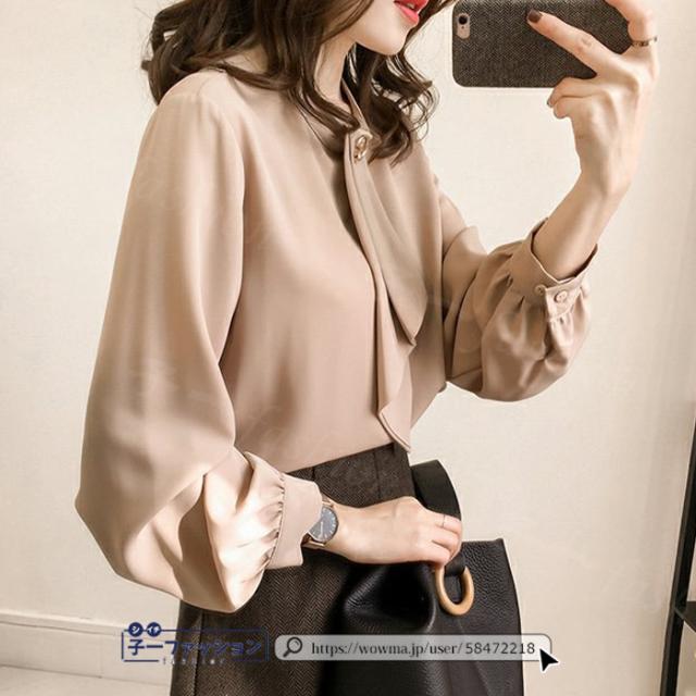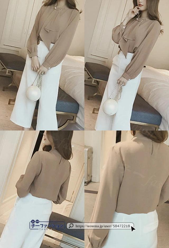ブラウス シャツ シフォンブラウス 長袖 冬新作 トップス オフィス マッチングしやすい リボン付きブラウス 胸元パールボウタイブラウス 無地 きれいめ カジュアル 女子力 同窓会 女子会 デート 七五三 通勤 OL 春服 秋冬