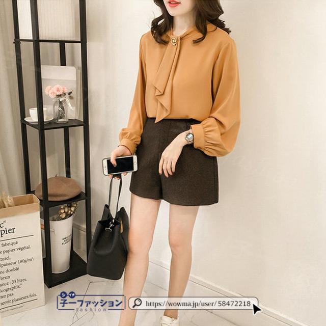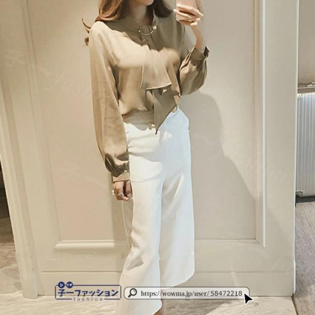 ●甘さ控えめで上品な印象のボウタイブラウス。