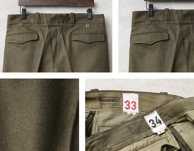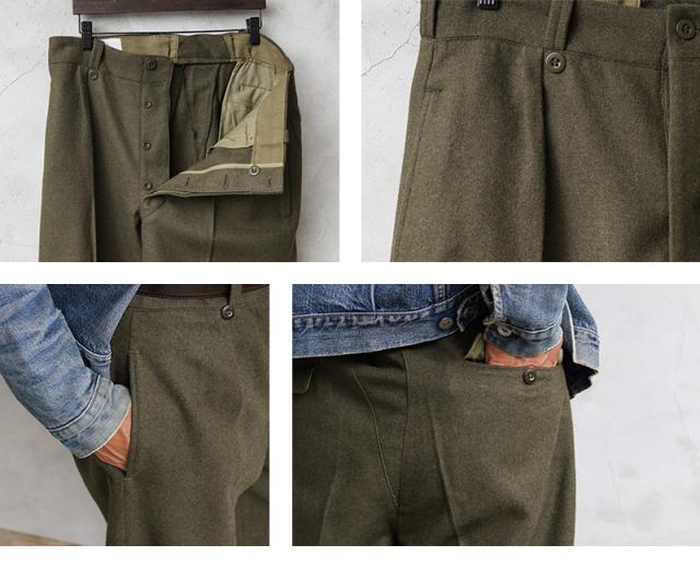実物 新品 デッドストック フランス軍 1950〜60年代 M-52 ウエストカスタム ヴィンテージ ワンタック ウール トラウザーズ【Cx】【I】|ミリタリーパンツ ウールパンツ スラックス メンズ ボトムス 軍パン 軍放出品 大きいサイズ