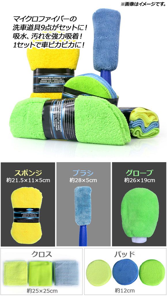 AP 洗車セット マイクロファイバー 9点 愛車ピカピカ! AP-UJ0418