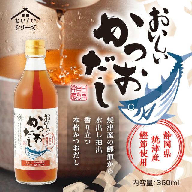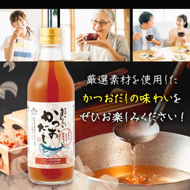 おいしいかつおだし 日本自然発酵 360ml×1本 だし 調味料 静岡県焼津産 鰹節使用 だしつゆ 白しょうゆ かつお節 本格かつおだし かつお粉 厳選食材 出汁 おいしいだし