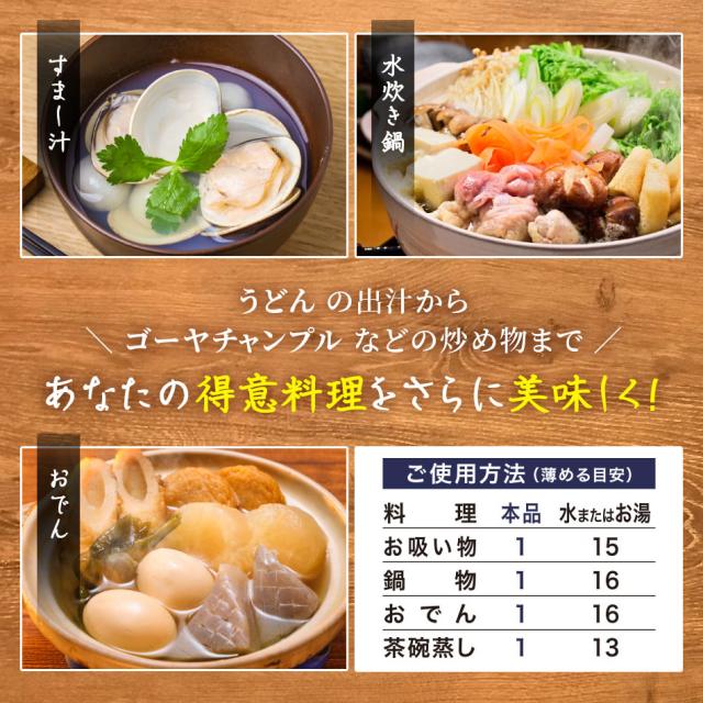 焼津産の鰹節から水出し抽出、香り立つ本格かつおだしです。