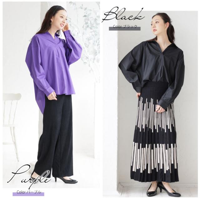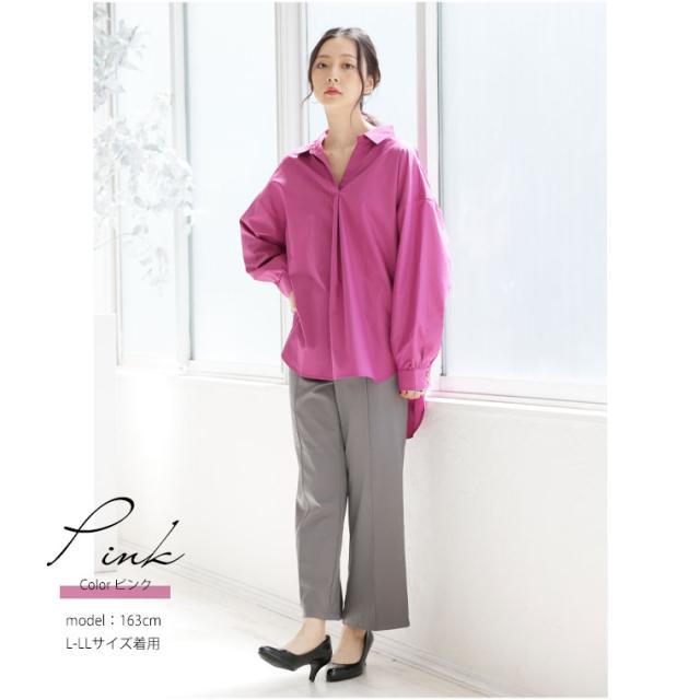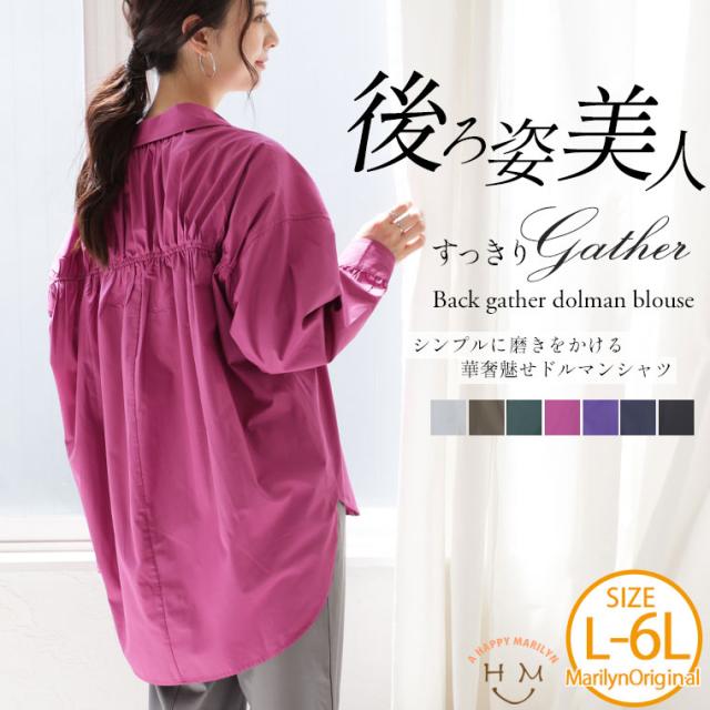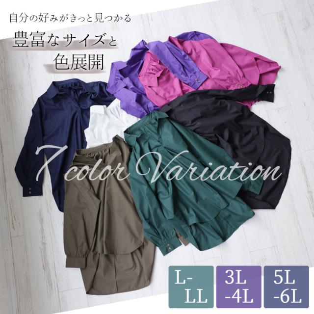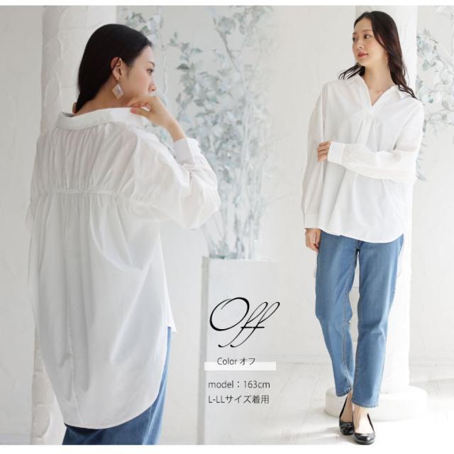 新作 大きいサイズ レディース ブラウス | 後ろ姿美人 スッキリギャザーの美人 スキッパーブラウス [473181] LL 3L 4L 5L 6L