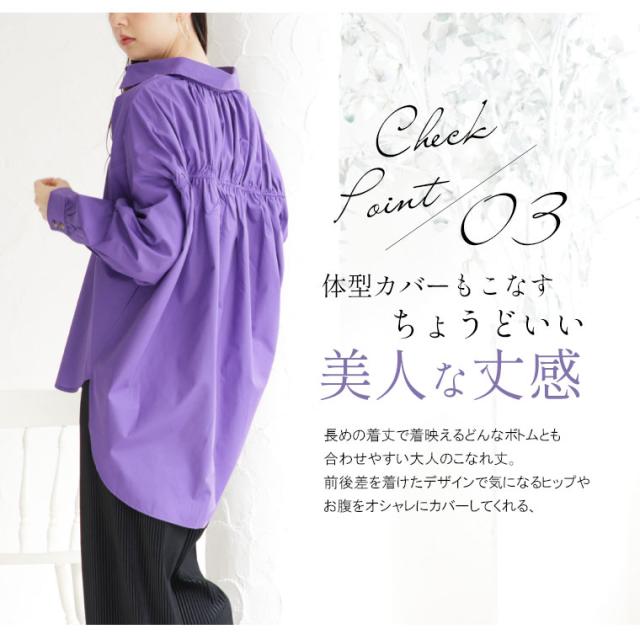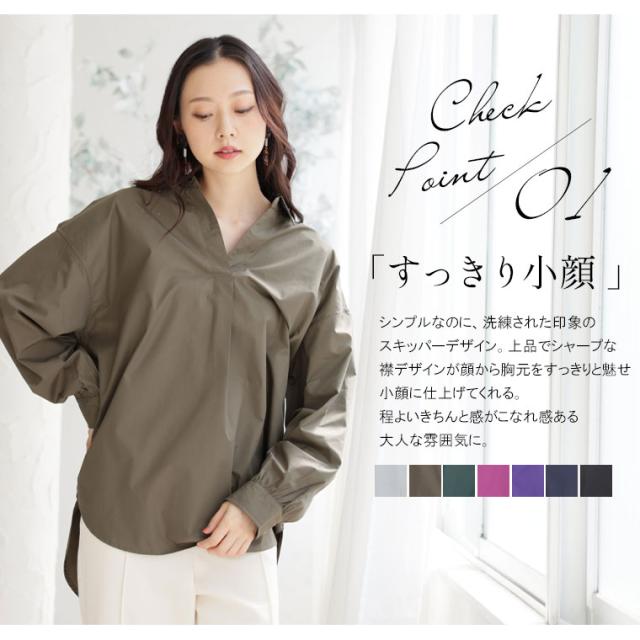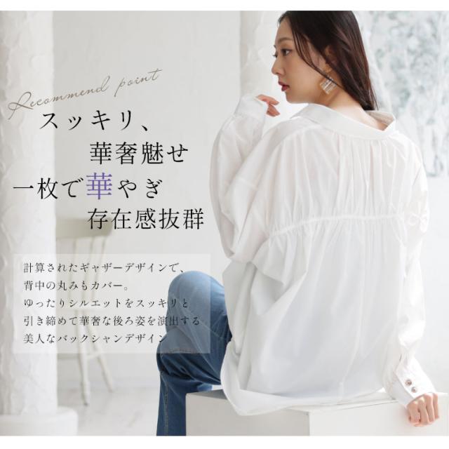どこから見ても華奢魅せシルエット スッキリギャザーのスキッパーブラウス