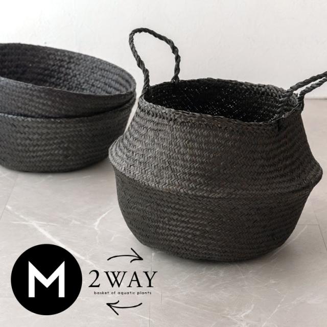 バスケット かご Mサイズ 2way シーグラス ラウンド ブラック 黒 折りたたみ W 35cm D 35cm H 32cm ハンドル付き 籠 収納 51293