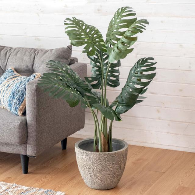 フェイクグリーン モンステラ 高さ 100 cm 鉢付き 観葉植物 グリーン インテリアグリーン ポット付き ワイヤー入り 針金入り ボタニカル インテリア おしゃれ ナチュラル リビング 寝室 玄関 カフェ 店舗 リゾート [91504]