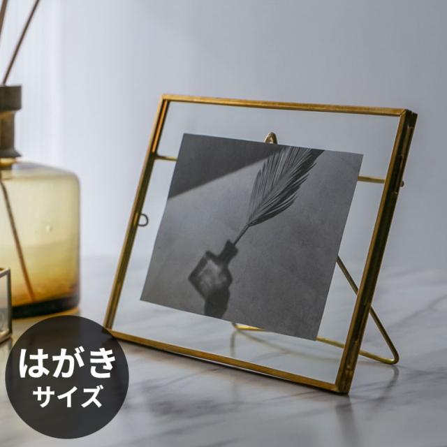 フォトフレーム 横置き ガラスと真鍮 ガラスケース ハガキサイズ 写真たて 写真入れ フォトスタンド フォトディスプレイ 写真 メニュー スタンド ヴィンテージ 風 ビンテージ 風 アンティーク 風 おしゃれ 韓国 韓国インテリア アジアン 雑貨 [67052]