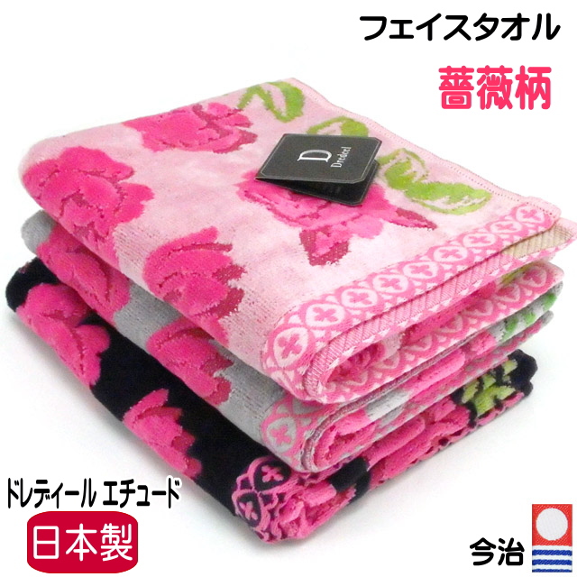 フェイスタオル 薔薇柄 薔薇 ドレディール エチュード 今治 綿100% 日本製 高品質 手拭 薔薇雑貨 薔薇柄 姫系 バラ ローズ