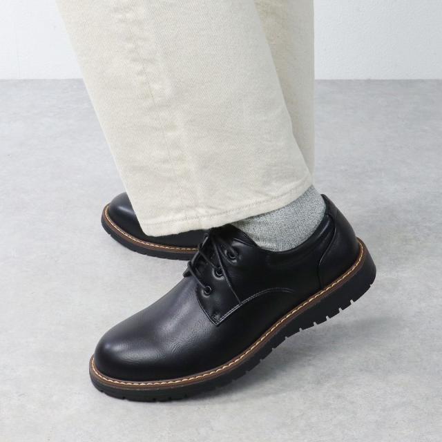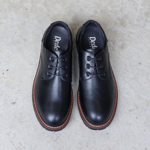 カジュアルシューズ メンズ 外羽根 紐靴 ドレスシューズ 合成皮革 3E ゆったり 3cmヒール 25.0cm〜27.0cm 黒 ブラック No.6340 デデス 634