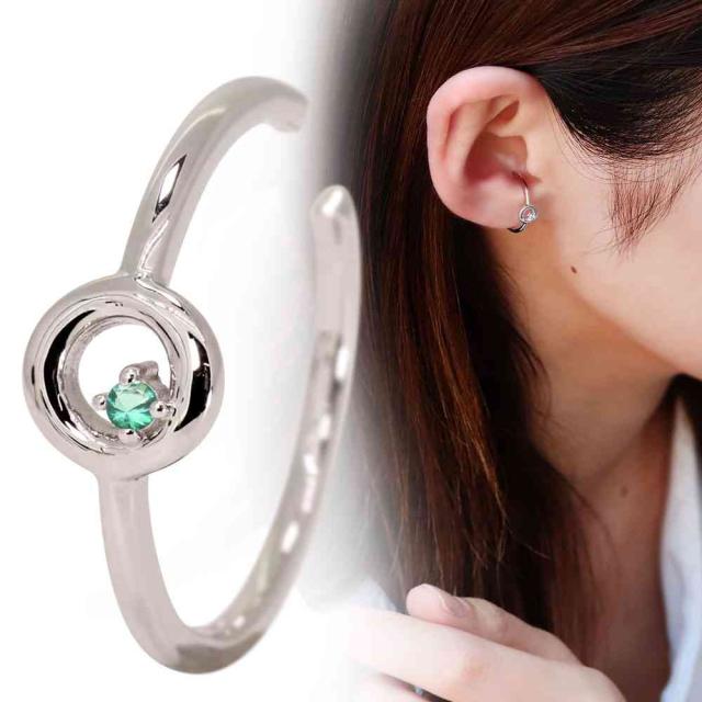 イヤーカフ シルバー 片耳用 レディース 華奢 エメラルド 誕生石 イヤカフ シンプル ノンホールピアス