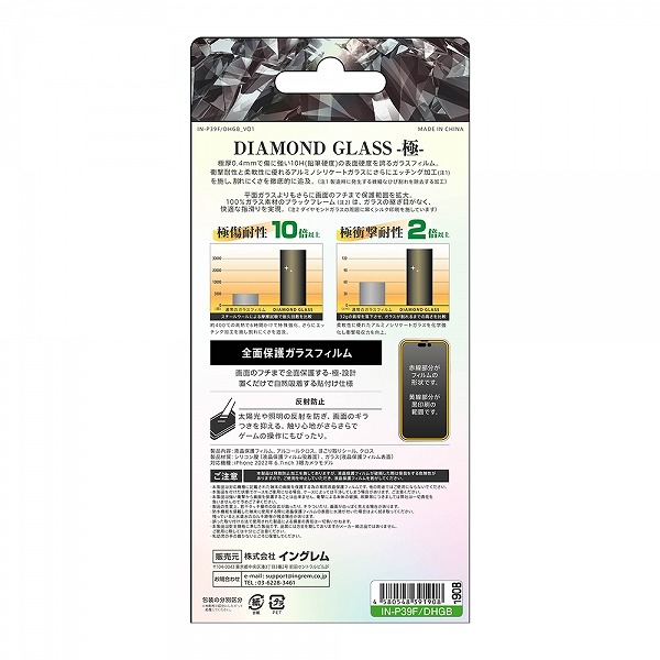 iPhone 14 Pro Max ダイヤモンド ガラスフィルム 10H 全面保護 反射防止 ブラック 超強靭 クリア 頑丈 丈夫 強い 美しい 高透明 さらさら DIAMOND GLASS agesugi_ssm