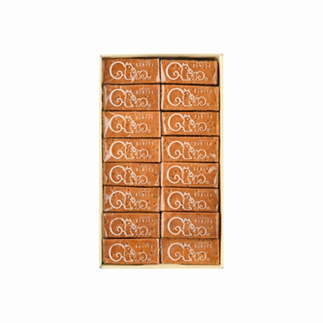 ぎっしりと詰まった歯ごたえのよいクルミと、甘さとほろ苦さの絡み合った自家製キャラメルをバター生地ではさんだ贅沢な焼き菓子です。クルミとキャラメルの絶妙な配合に加え、しっかりとした生地が全体のバランスを整えています。職人たちの仕上げたおいしさが、何気ないひと時や特別な時間を、より豊かにしてくれます。商品コード 賞味期間 100150 お届け日から35日以上包装紙 箱サイズ あり 約19.3×11.4 ×3.4 cm※代理購入となります。ご了承ください。※パッケージ内容は予告なく変更となる可能性がございます。ご了承ください。