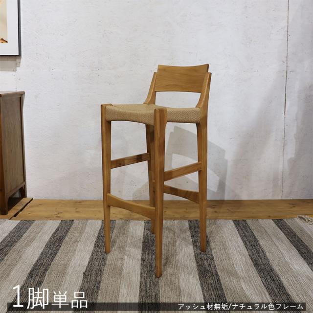 アッシュの天然木、無垢材とペーパーコードの座面北欧スタイルのオシャレなカウンターチェアAZA。