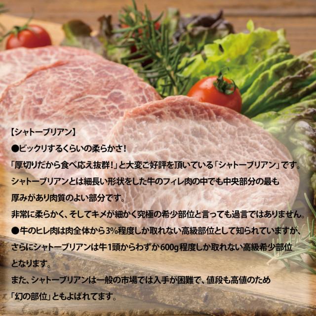 シャトーブリアン 500g (約3個から4個入り) 超厚切り2.5cm 牛肉 牛ヒレ肉(加工牛肉)
