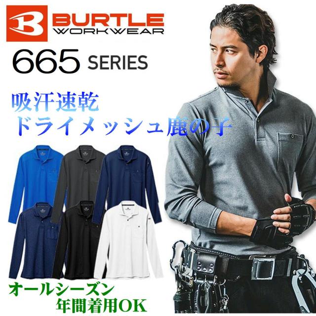 BURTLE バートル 665 【665】 長袖ポロシャツ BURTLE オールシーズン 年間商品 鹿の子 男女兼用 メンズ レディース ドライメッシュ 吸汗速乾 ストレッチ 消臭 作業着