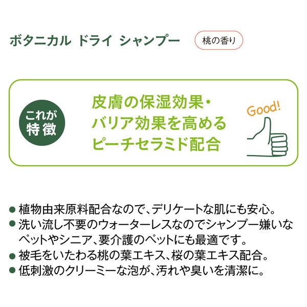 ペットの肌にやさしい泡シャンプー。植物由来成分配合でデリケートなワンちゃんにも。被毛をいたわる桃の葉エキス、桜の葉エキス配合。
