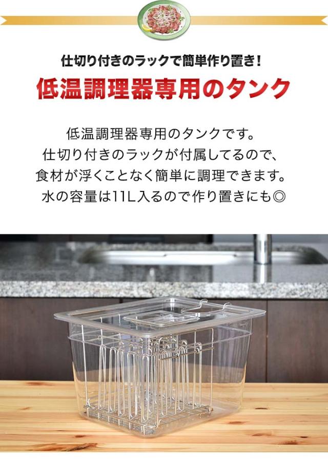 低温調理器 スロークッカー 専用タンク 11L 鍋 6列仕切り・ふた付き 耐冷・耐熱 32.5cm×26.5cm×20cm ローストビーフ 肉料理 魚料理 作り置き 下ごしらえ 調理器具 低温加熱 低温調理機 低温調理器具 ※調理機本体別売 1年保証 送料無料
