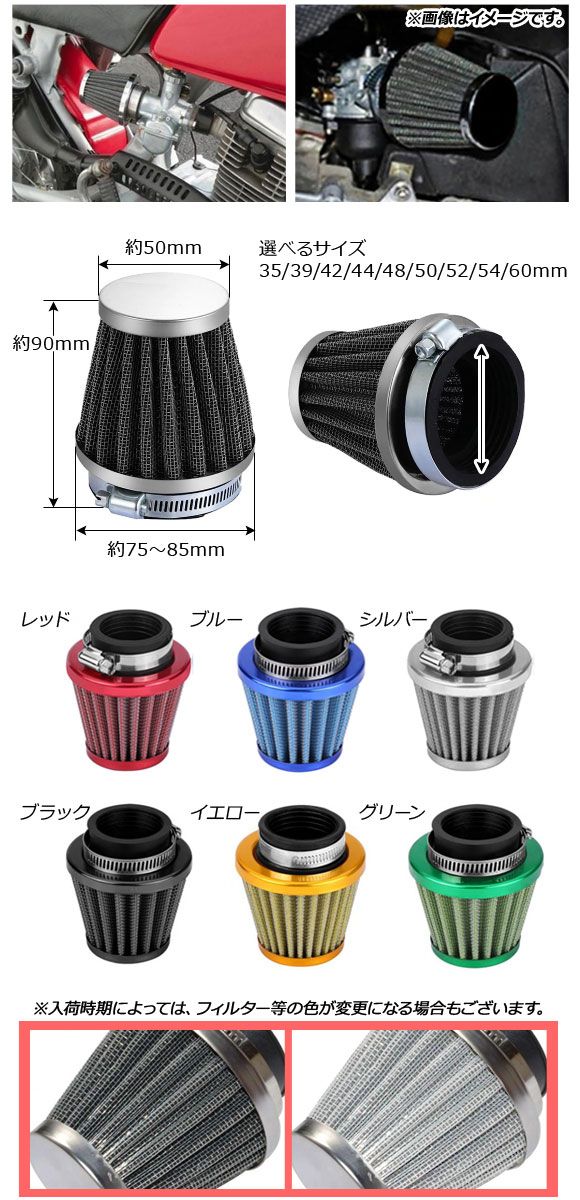 AP エアクリーナー 52mm キノコ形 ストレート 汎用 選べる6カラー AP-2A015-52MM 2輪